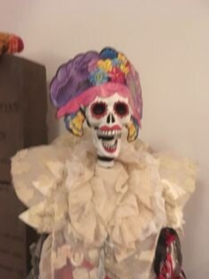 Den performance handlede om døden og alle var klædt som skeletter. Der medvirkede både børn og voksne der "dansede" som skeletter med ild, lysende genstande og blomster i håret og høje sko. I mexico er kvindelige skeletter med makeup og høje sko. Mit indtryk er at mange danskere ikke kan forstå hvorfor Mexicanerne fejrer døden på denne måde. Men nu skal I høre hvordan jeg forstår det.